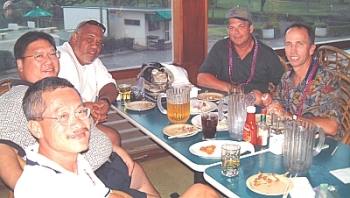 Here are two pictures of the 19th hole at our recent [golf] outing [with Jim Pitchford at Olomana golf course]. Joseph Lau took top honors. Kaipo showed up and did not end up last.